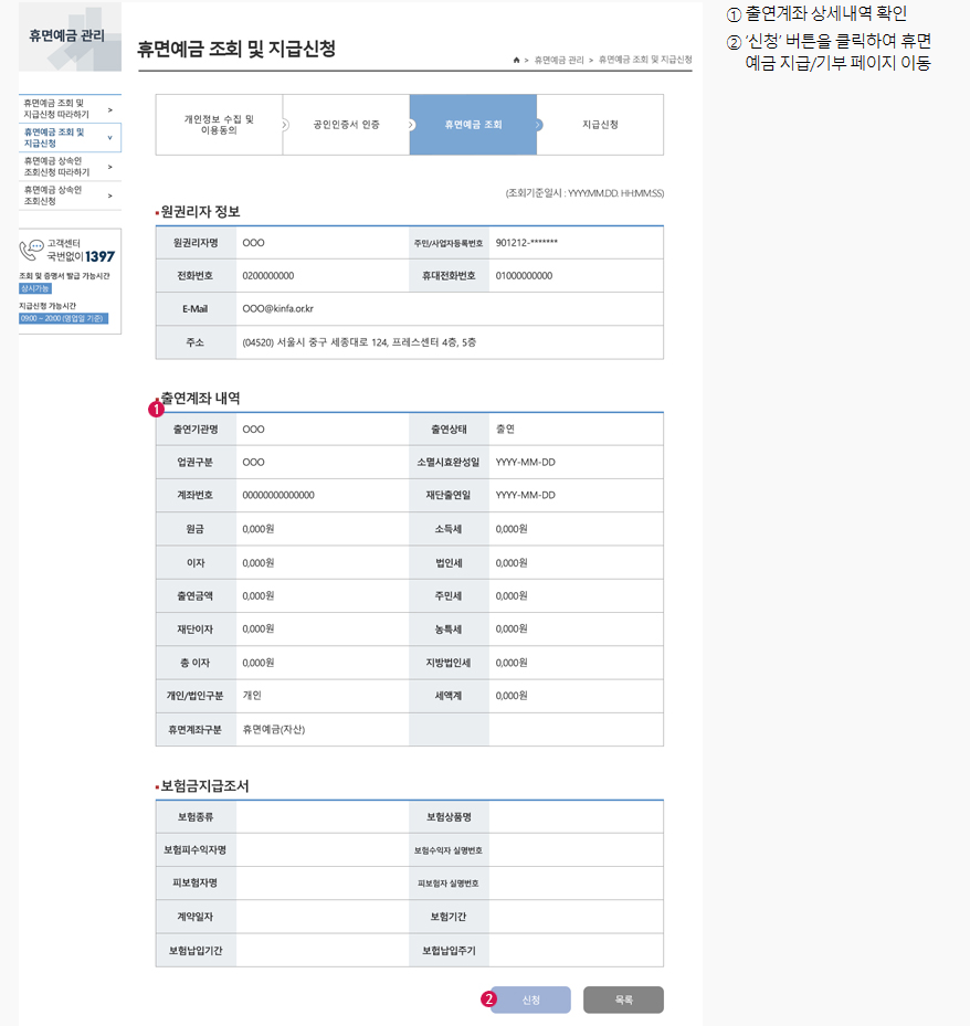 1천만원을 초과하는 계좌의 잔액은 서민금융통합지원센터에 직접 방문해서 신청하거나 해당 은행 영업점에 방문신청을 해야 합니다. 서민금융진흥원 휴면예금 찾아줌 사이트에서 소액이라도 휴면예금 찾기를 하신분들은 휴면예금 출연/지급 확인서 발급을 통해 인쇄할 수 있습니다.