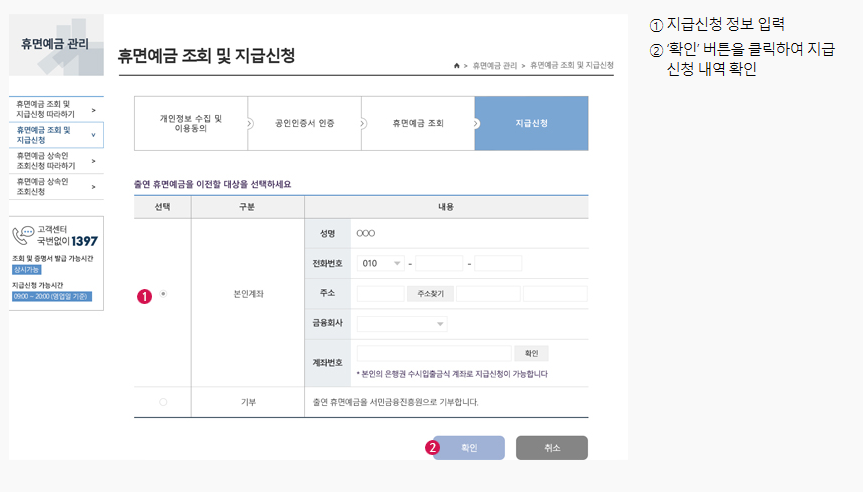 여러개의 계좌에 자고 있는 내 돈을 찾으신분들은 일부를 선택해서 본인좌로 받을지 기부를 할지 선택할 수 있습니다. 휴면예금 찾기에서 계좌를 선택하시고 상세내역 조회를 하시면 계좌의 상세 정보도 확인할 수 있습니다. 그리고 바로 계좌에 있는 금액을 본인 명의의 다른 계좌로 지급받을지 기부를 할지 선택할 수 있습니다. 본인 명의의 다른 계좌로 지급 선택하시면 이름과 전화번호, 주소, 지급받을 본인의 계좌등의 정보를 입력하고 신청내역을