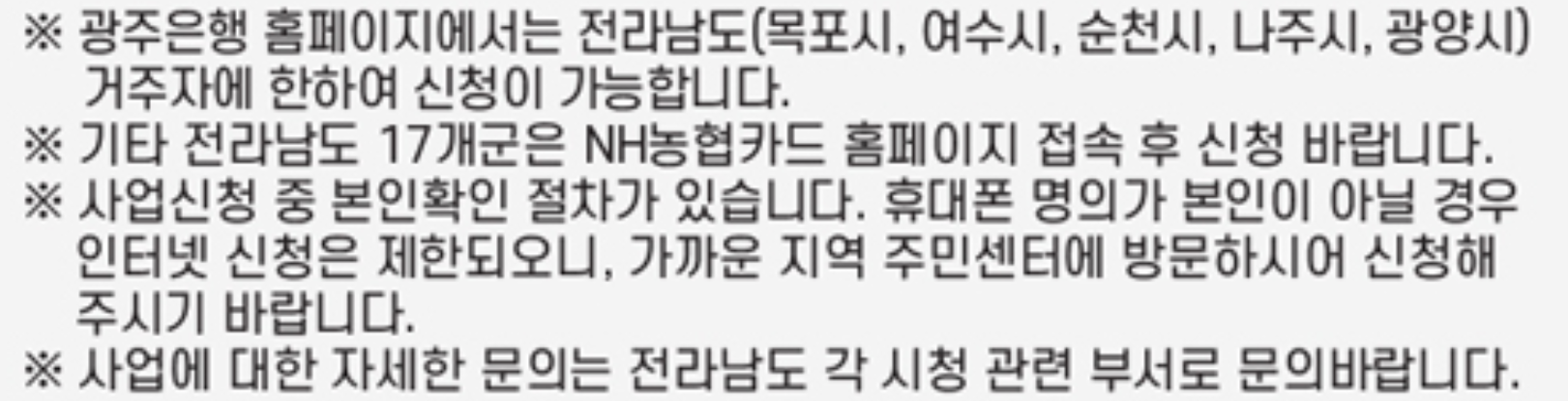 전남 청년 문화복지카드 신청은 광주 은행, 농협 홈페이지에서 온라인으로 신청이 가능하며 관할 주민센터에서 방문 신청도 가능합니다. 현재는 아직 광주은행은 홈페이지 신청이 활성화 되어있지 하여서 신청기간이 되어광주은행과 농엽 홈페이지에서 본인 인증을 하시고 신청을 하실 수 있습니다. 전남 청년 문화복지카드 신청을 하신 후에는 해당 지역에서 자격 요건을 심사를 하고 난 뒤 지급 대상을 통보하고 카드를 발급하여 줍니다. 사용기한 카드 발급일로부터 해당 년도 12월 31일까지 이고 사용기간 내 사용하지 못한포인트는 이월이 불가능하니 참조하시기바랍니다.